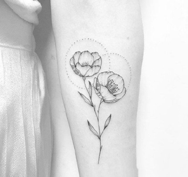女生素花纹身 适合女孩子的小清新花朵线条纹身图案