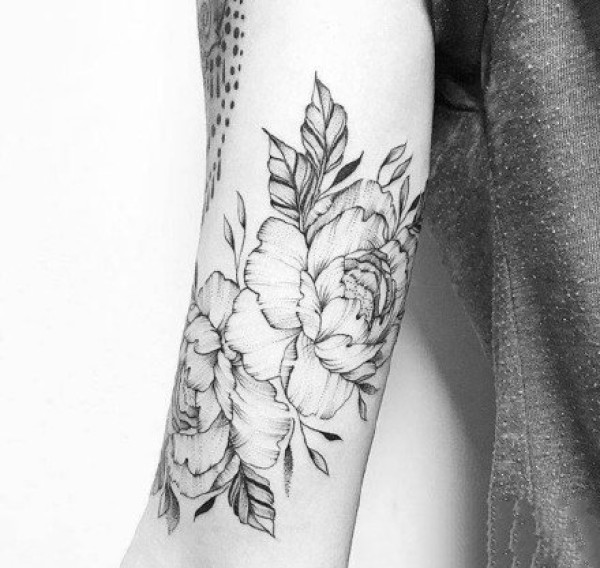 大臂素花纹身 9款女士的大臂黑灰花朵植物纹身图案