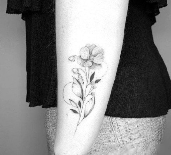 小臂上小清新的黑灰素花纹身图片