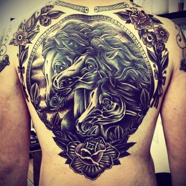 马纹身图案 10款黑灰或彩绘的纹身动物马图案