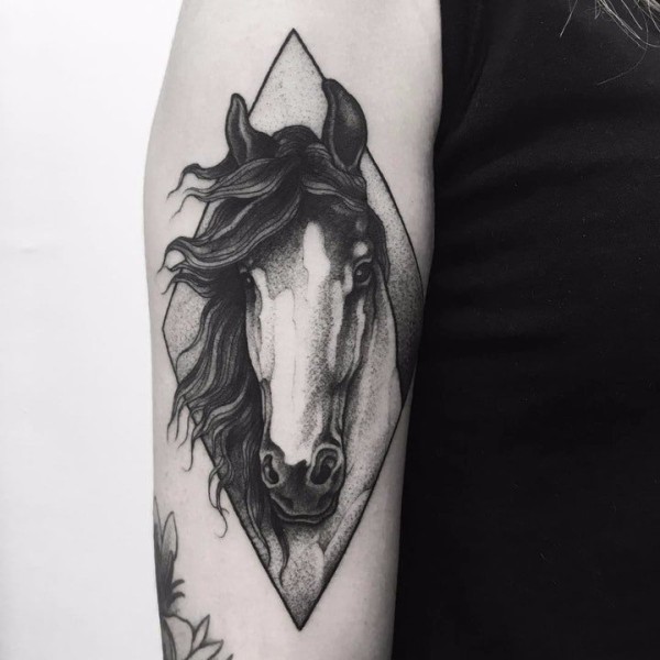 马纹身图案 10款黑灰或彩绘的纹身动物马图案