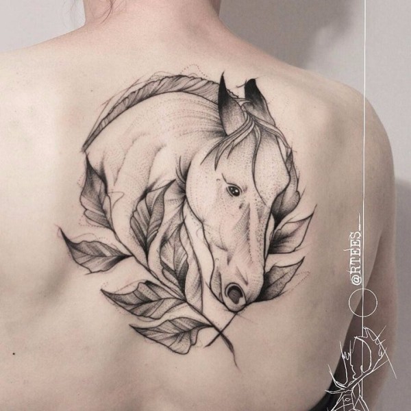 马纹身图案 10款黑灰或彩绘的纹身动物马图案