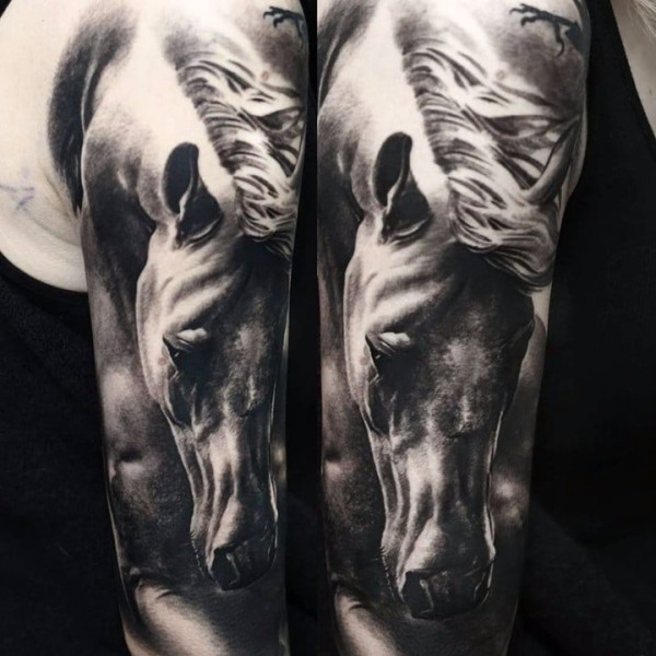 黑灰色的9张写实骏马纹身作品
