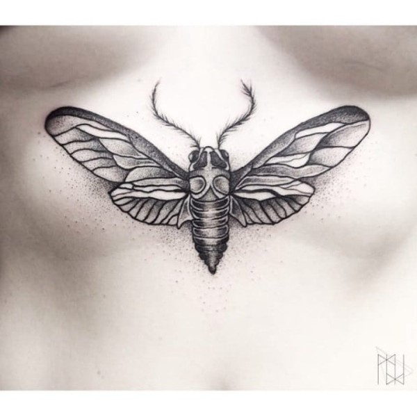 性感女生胸部漂亮感性的小昆虫纹身图图片