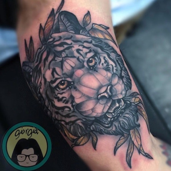 狮头虎头纹身 9组逼真的手臂包臂写实虎头和狮子头纹身图案