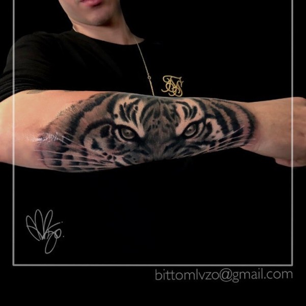 男性们都喜欢这样帅气的凶猛的老虎纹身图案