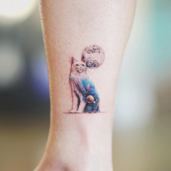 一组炫彩色星空星球宇宙相关的纹身图案作品