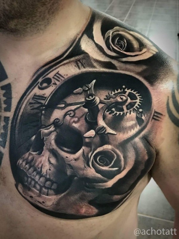 男士胸前的一组大花胸纹身图片欣赏