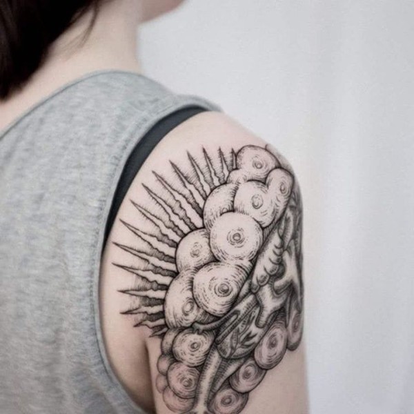 12款简洁个性的黑白纹身点刺技巧云朵纹身图案大全