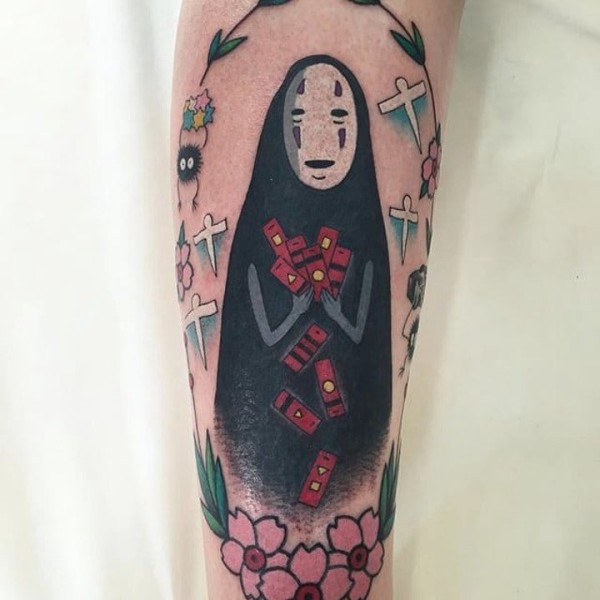 无脸男图案 神秘而又不失柔情的宫崎骏动漫无脸男纹身图案