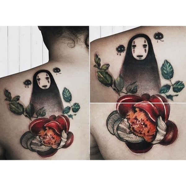 无脸男图案 神秘而又不失柔情的宫崎骏动漫无脸男纹身图案