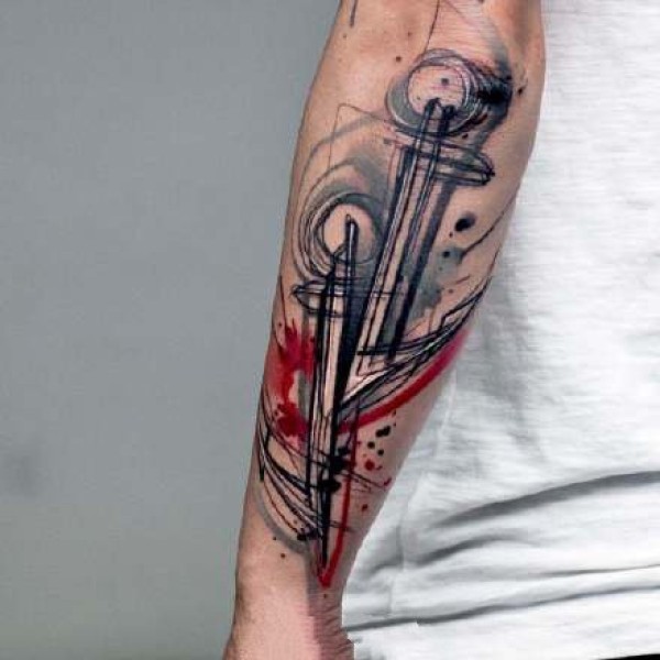 胳膊原创水彩心上钥匙纹身图案