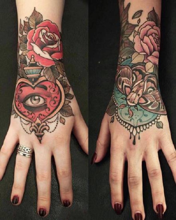newschool小臂纹身 好看的9张school手部的彩色纹身图