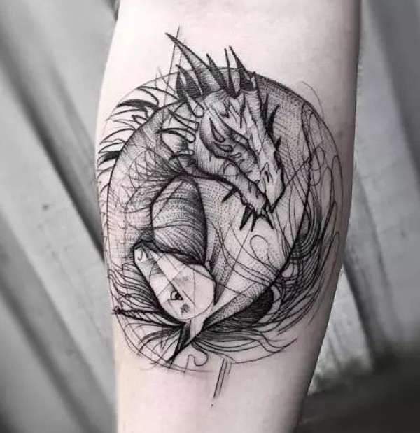 点线纹身 设计感极强的写实与抽象结合的纹身图片