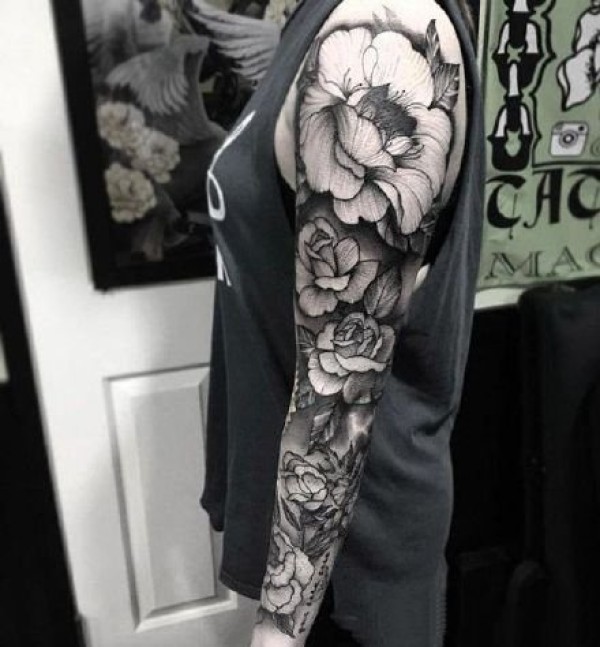 写实大黑臂纹身--6张欧美写实黑色大花臂纹身图案
