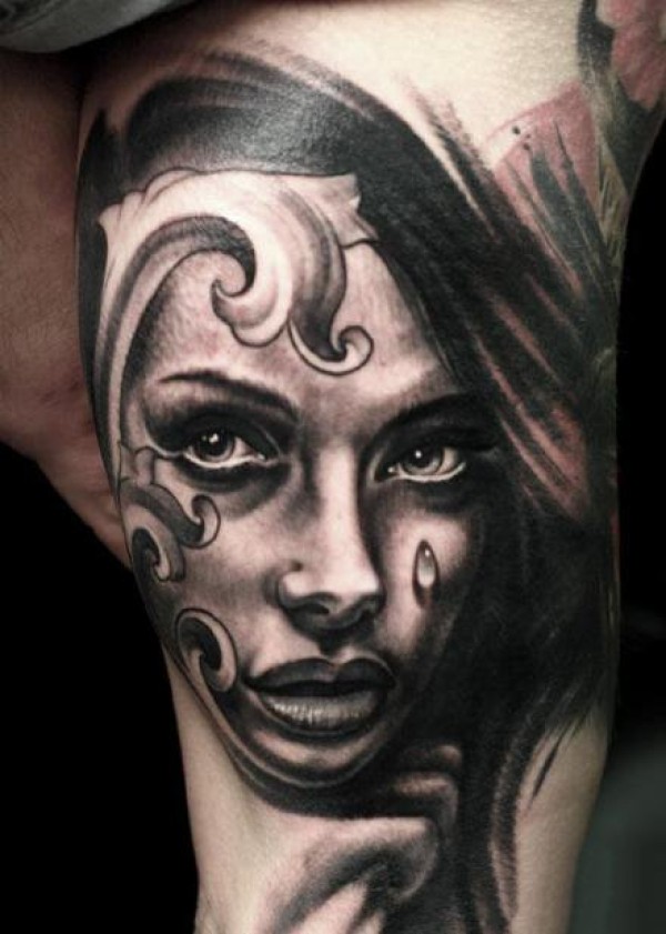 女性肩部肖像刺青_肖像纹身图案大全_纹身图吧