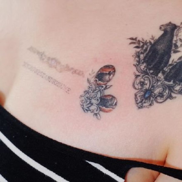 胸部蝴蝶结里的红宝石纹身图案