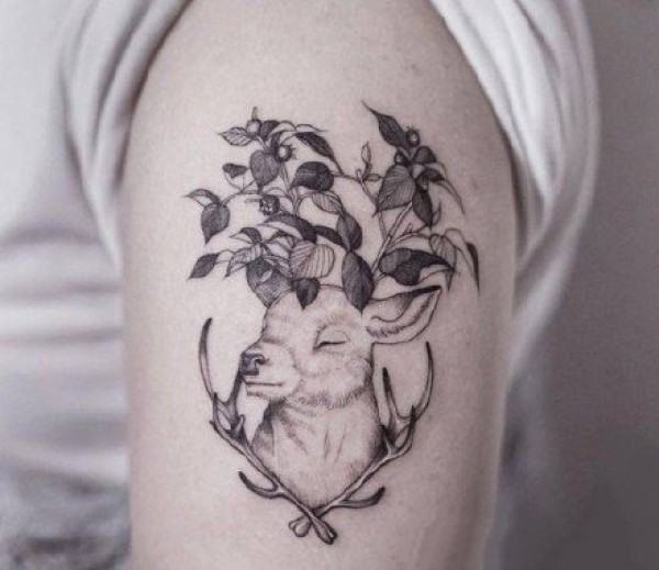 9张和鹿角鹿头相关的纹身图案作品欣赏