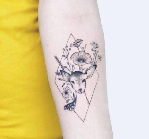 小鹿头纹身 9张小清新的小鹿和鹿头纹身图片