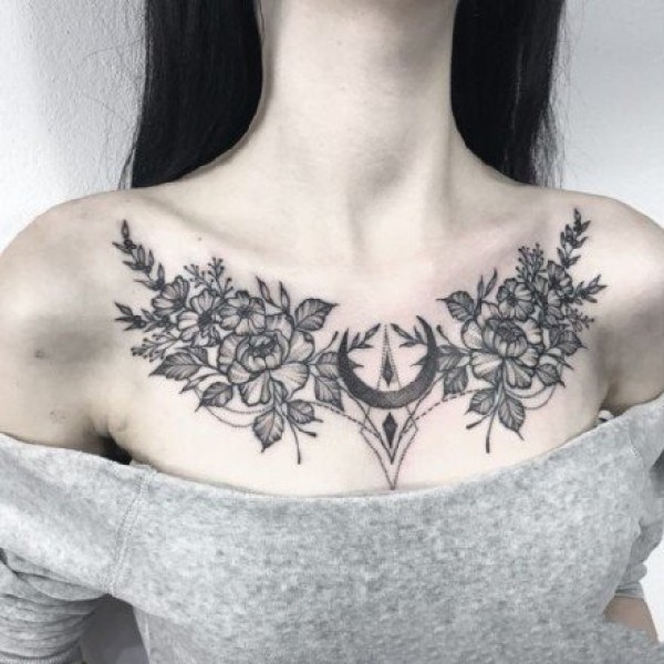 性感花胸纹身 女生胸部性感的肩花和花胸纹身图案