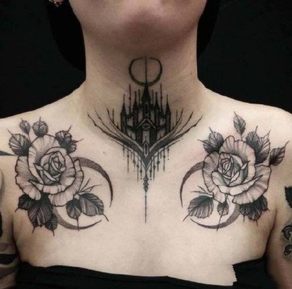 女性大花胸纹身_43张霸气漂亮的女性大花胸纹身图案作品