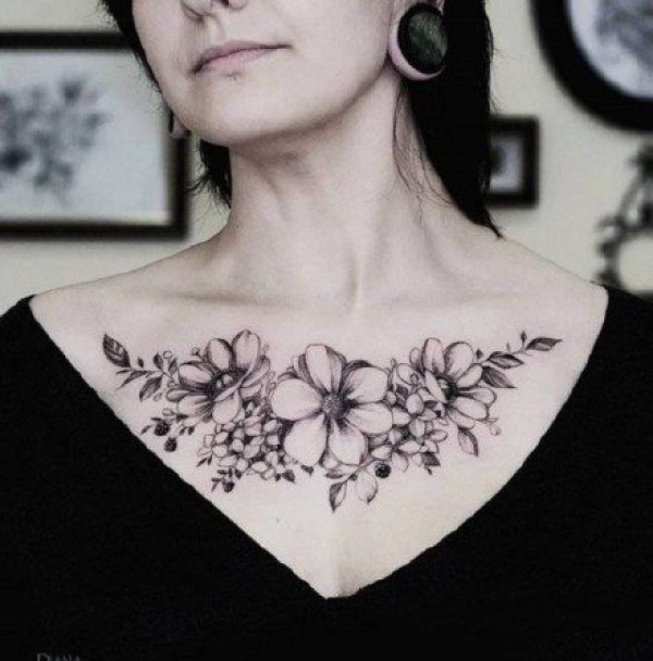 性感花胸纹身 女生胸部性感的肩花和花胸纹身图案