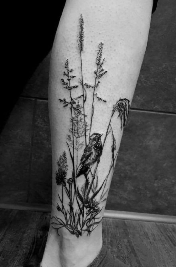 清新花朵腿部纹身图案图片_植物纹身图案大全_纹身图吧