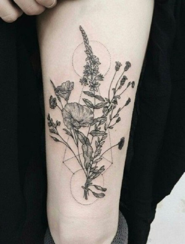 水墨植物图片 水墨风格的一组黑灰植物纹身图片