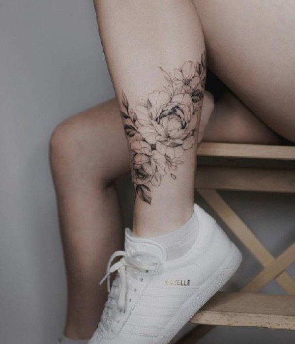 清新花朵腿部纹身图案图片_植物纹身图案大全_纹身图吧
