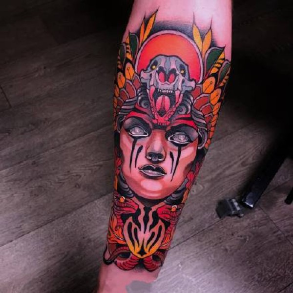 几张炫彩newschool彩色手臂纹身图案作品