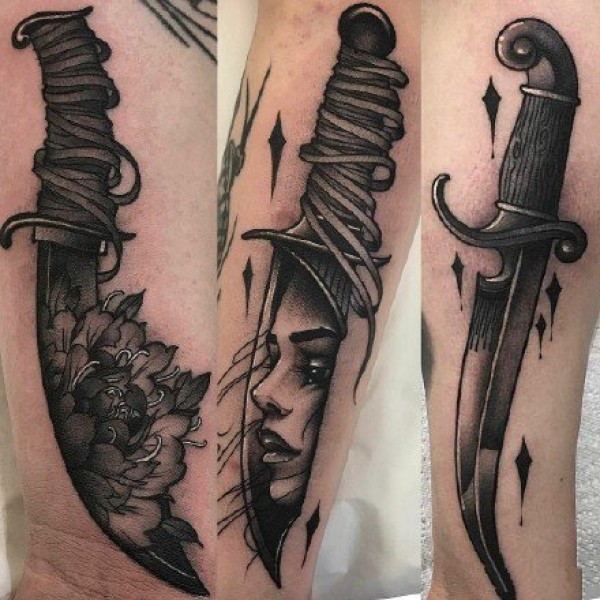 花腿纹身--一组大黑腿纹身图案作品欣赏