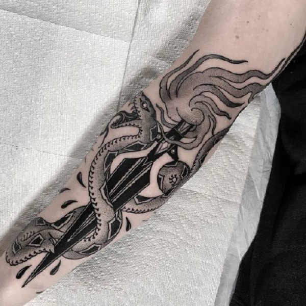 适合小臂上好看的黑灰纹身图案欣赏