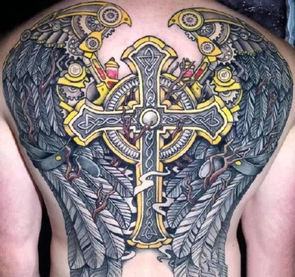 一款很立体的彩色十字架纹身图案_十字架纹身图案大全_纹身图吧