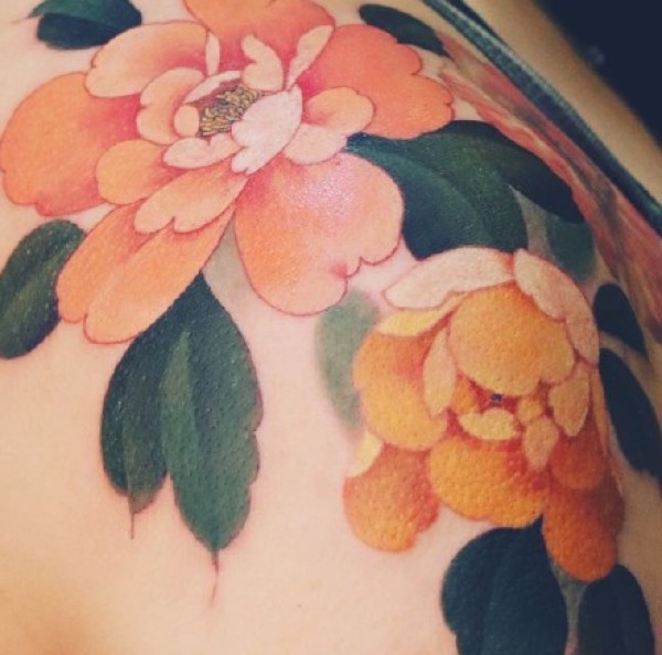 好看的一组传统牡丹花纹身图片