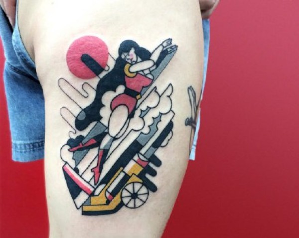 抽象几何纹身 拼接风格的一组抽象彩色几何纹身图片