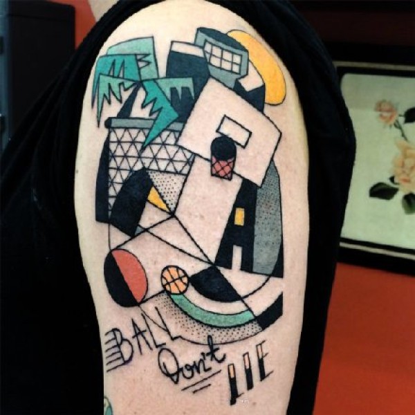 抽象几何纹身 拼接风格的一组抽象彩色几何纹身图片