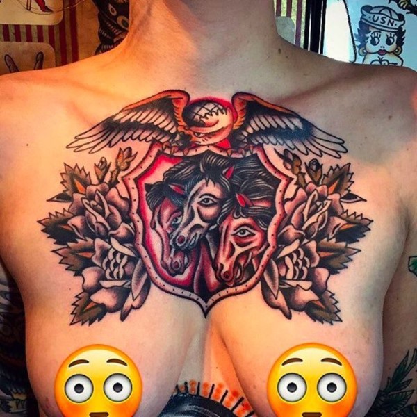 马纹身图案 10款黑灰或彩绘的纹身动物马图案