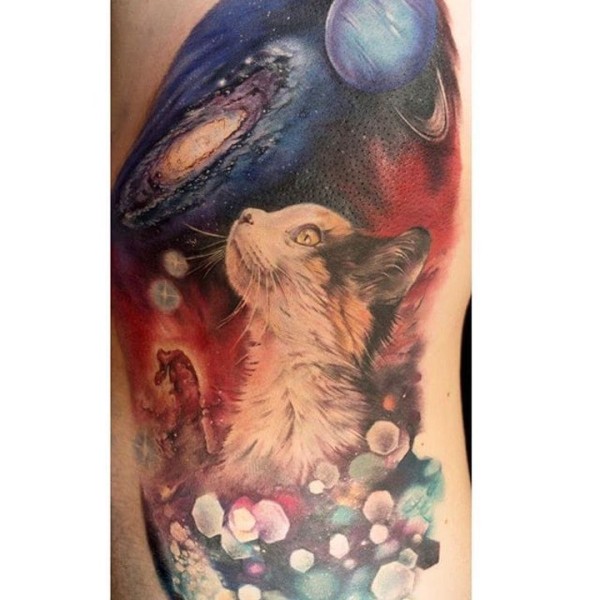 手背猫纹身:9张大花手背的猫纹身图案赏析