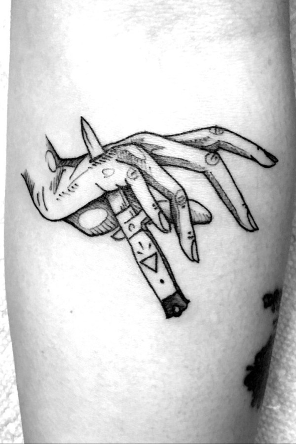 手势纹身图案 各种各样黑灰色调的手势纹身图案