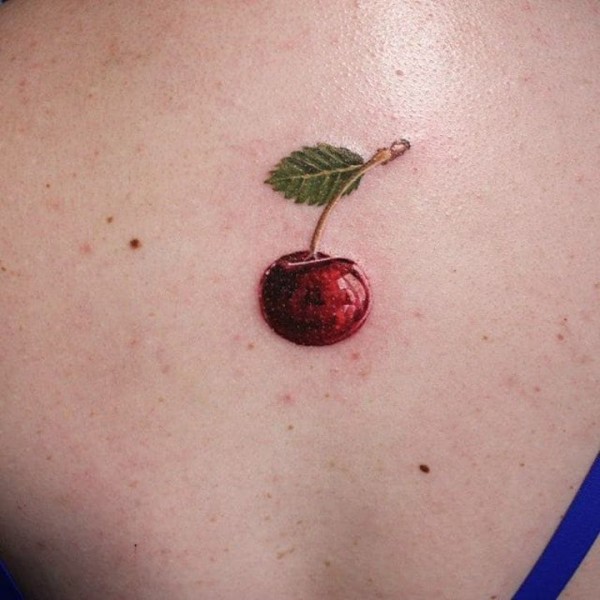 女性身上看起来是如此可口的水果樱桃纹身图案