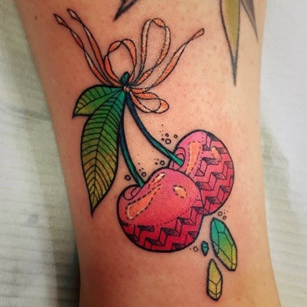 女性身上看起来是如此可口的水果樱桃纹身图案