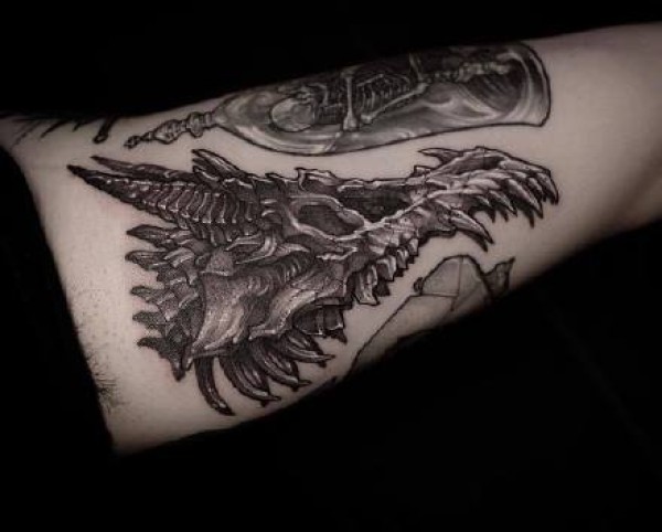 超帅时尚的黑灰骷髅与蛇纹身图案