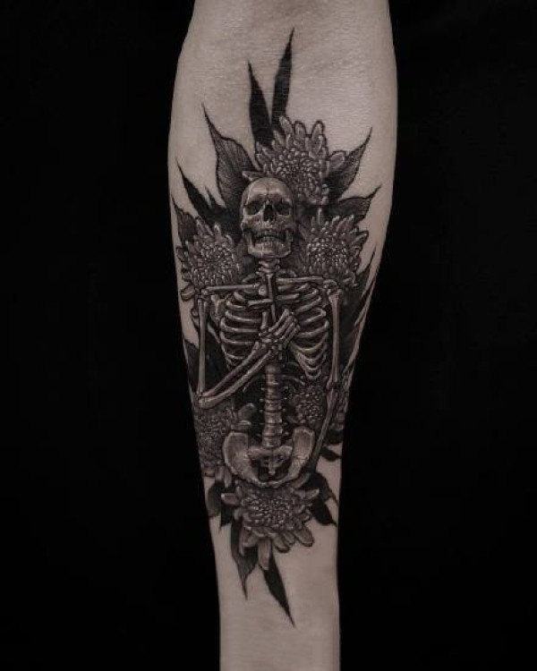 个性手臂悲伤的骷髅纹身图案图案图片_骷髅纹身图案大全_纹身图吧