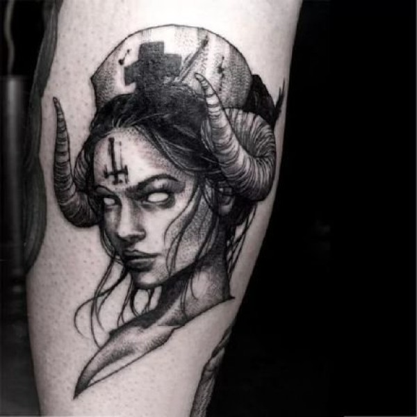 暗黑主题的一组人物女郎纹身图案