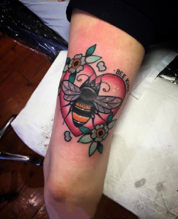 手臂上可爱的小蜜蜂彩色纹身图案