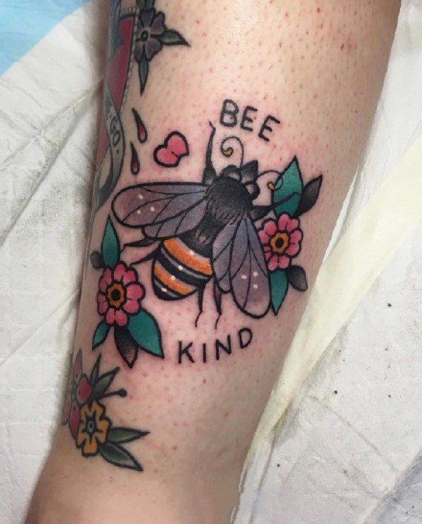 蜜蜂纹身图案 女生小腿上彩绘的蜜蜂纹身图片