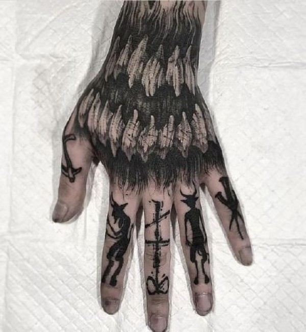 黑色手背纹身 手背上深黑色的纹身作品欣赏
