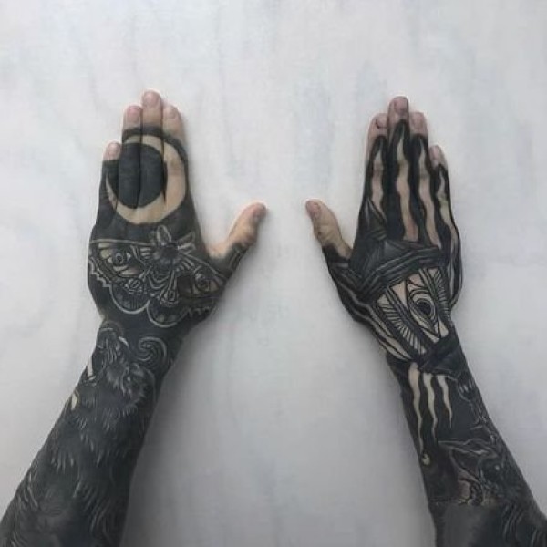 黑色手背纹身 手背上深黑色的纹身作品欣赏
