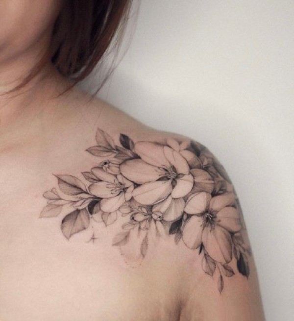大臂素花纹身 9款女士的大臂黑灰花朵植物纹身图案