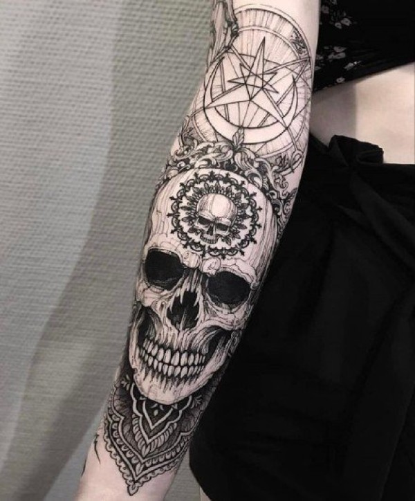 黑白纹身图案大全 多款黑白纹身骷髅图案和个性几何纹身图案